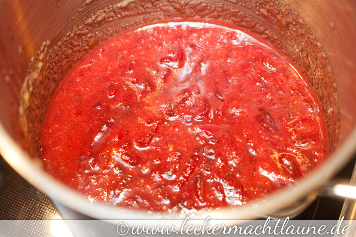 3. Aufkochen, 4min unter Rühren kochen und in sterilisierte Gläser füllen. 5min auf den Kopf stellen und fertig. 🙂