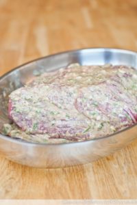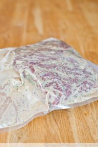 2. Fleisch abtrocknen und mit der Marinade einreiben. Danach (wenn möglich) vakuumieren und ca. 24 stunden lang im Kühlschrank marinieren.