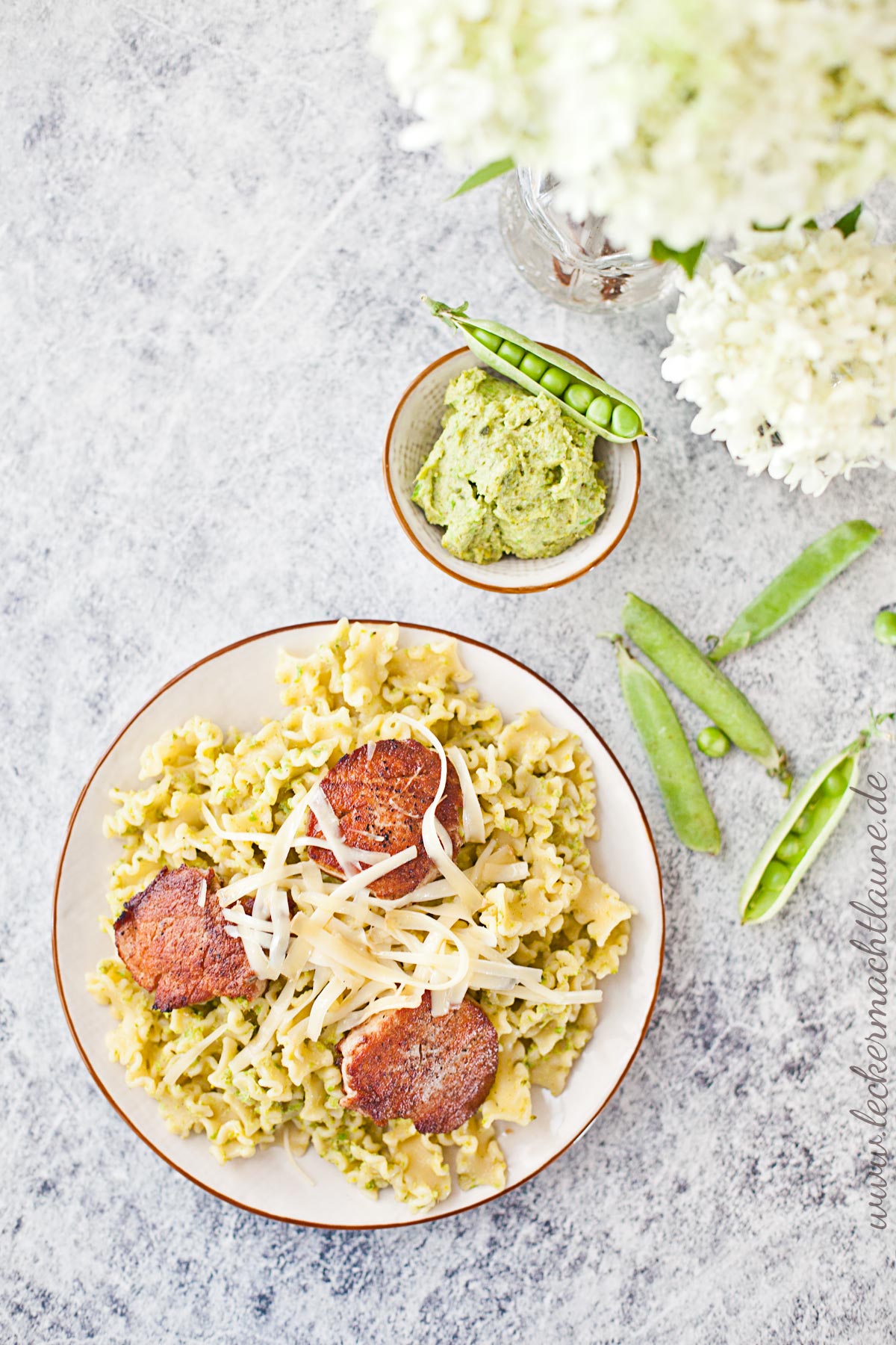 Kennt Ihr das? Man hat so seine Essensgewohnheiten und kauft immer wieder dieselben Zutaten und Gemüsesorten ein. Und obwohl ich extrem gerne neue Rezepte ausprobiere, stelle ich das trotzdem auch bei uns immer wieder mal fest. Erbsen zum Beispiel gehören komischerweise zu Gemüse, das wir kaum essen. Dabei habe ich überhaupt nichts gegen Erbsen. Ehrlich. 🙂 Als ich dann in der „So isst Italien“ das Rezept für Pasta mit Erbsen-Artischocken-Pesto gesehen habe, war ich direkt neugierig: Artischocken und Erbsen? Passt das zusammen? Oh ja, und wie! Ich muss sagen, das war eine extrem leckere Kombination, die ich ich jetzt sicher öfter zubereiten werde.