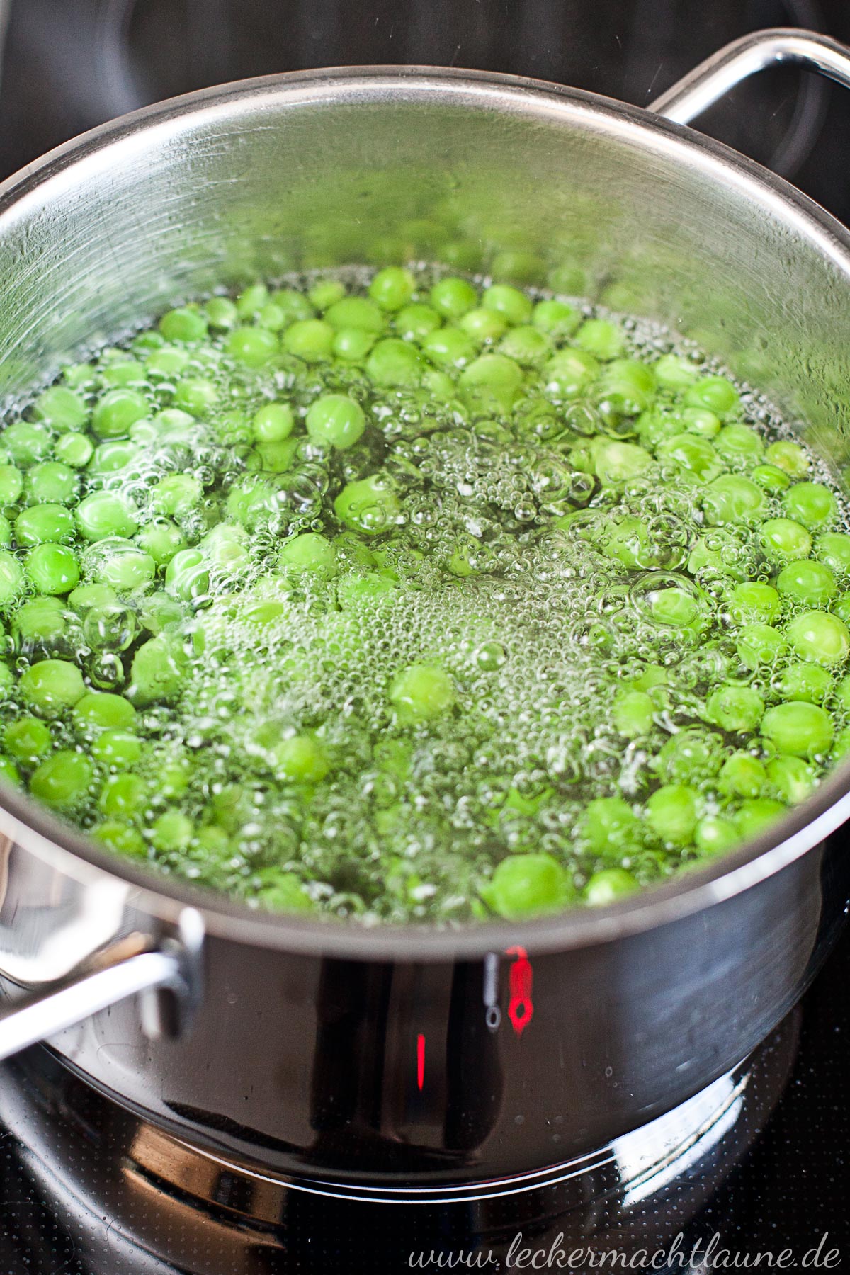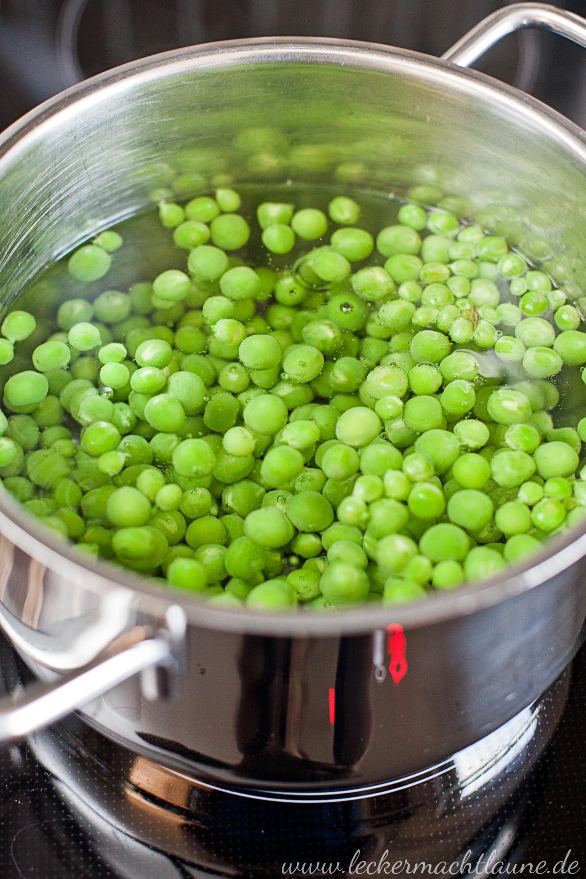 200g gepulte Erbsen (ich hatte dafür 500g Erbsen inklusive Schoten)
