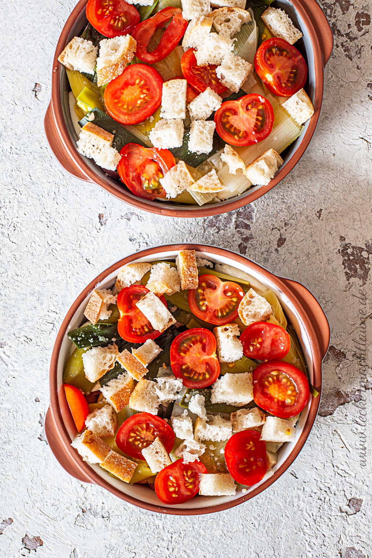 für eine große oder zweit mittlere Ofenformen mit Lauch-Tomaten-Gratin